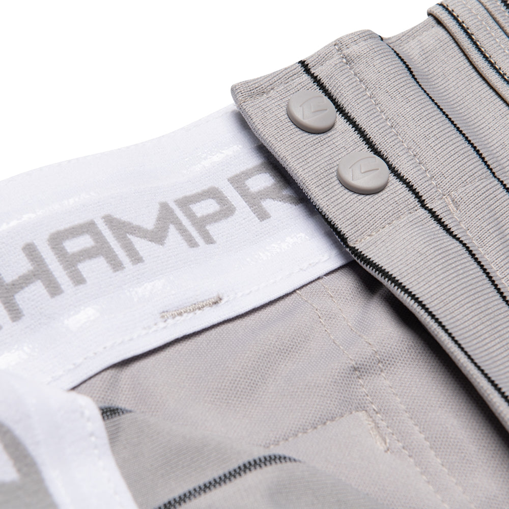 Triple Crown Pinstripe baseball pants deliver professional-grade performance with traditional ankle-length styling. The 2½" knit waistband features super-grip gel strips to keep your jersey secure throughout the game. Built with reinforced double-ply sliding seat and knees for enhanced durability during aggressive plays. Seven pro-style tunnel belt loops and two inset pockets provide functional design, while contrast 3/16" braid along the side seam adds classic appeal. The pro-warp 100% polyester, 13 oz. warp-knit fabric includes knit-in pinstripes and offers UPF 25 sun protection. Engineered for serious athletes who demand reliability and style on the diamond.