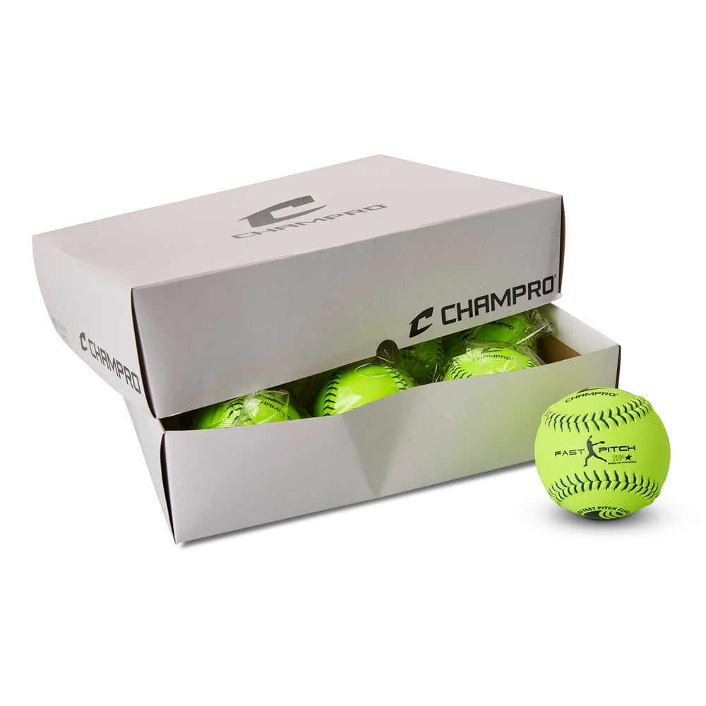 This USSSA-approved 12" fast pitch softball features a solid polyurethane core engineered for consistent performance and durability. The optic yellow leather cover provides superior visibility and reliable grip in competitive play. With a .47 COR and 375 compression rating, this ball delivers the precise performance specifications required for sanctioned fast pitch tournaments. The raised seam construction with blue stitching ensures excellent pitcher control and ball movement. Built to meet USSSA standards, it's the ideal choice for serious players demanding tournament-grade equipment.